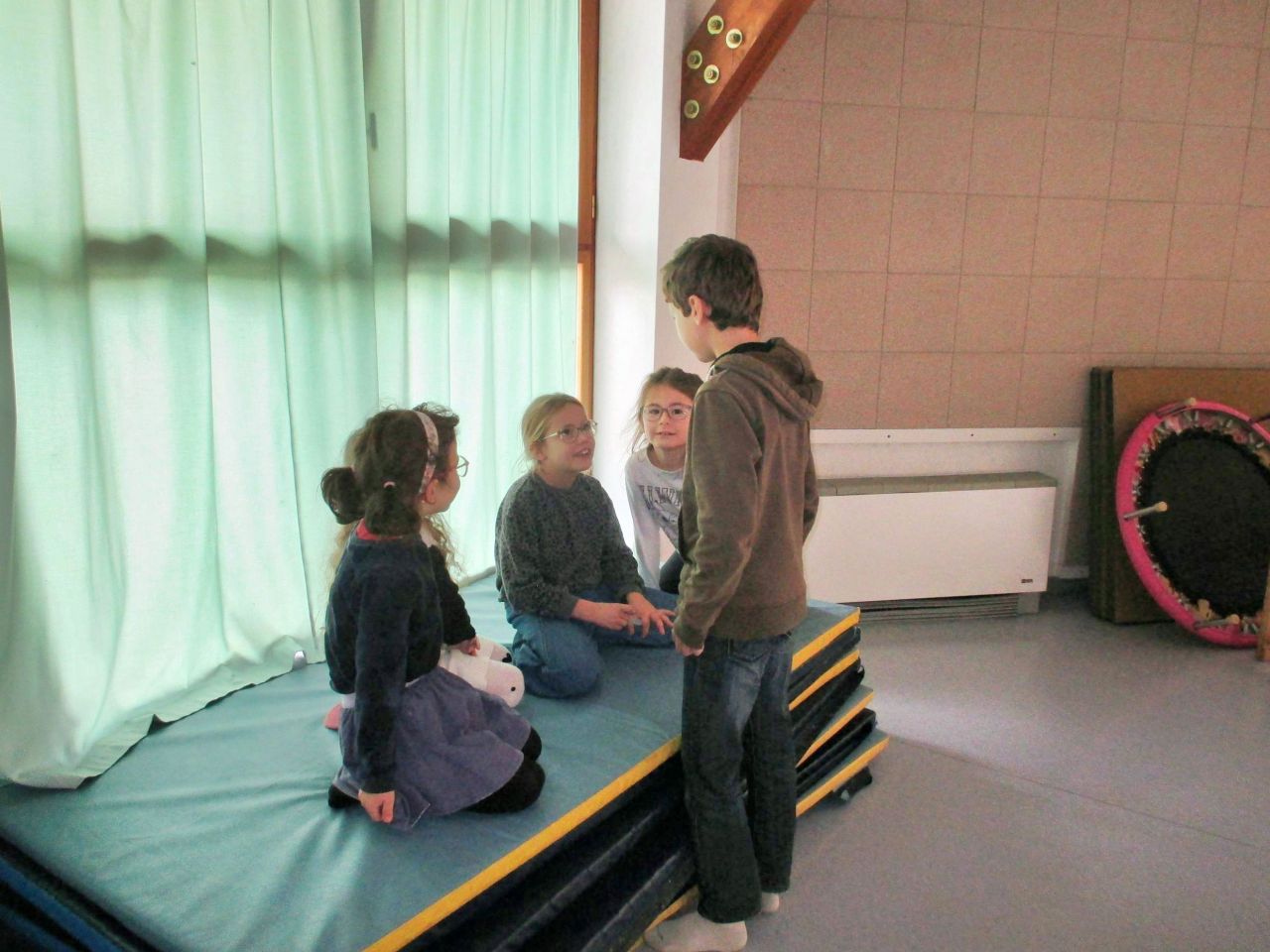 Les classes de GS au CM2 se sont retrouvées jeudi 6 novembre pour participer à des ateliers sur le thème du harcèlement. Les enfants ont ainsi pu réfléchir et débattre à partir d'une vidéo d'une situation de harcèlement. Ils ont ensuite écouté des histoires et ont échangé autour d'albums. Puis ils ont réalisé une œuvre d'art collective et enfin, ils ont interprété quelques petites saynètes illustrant des situations d'agression.